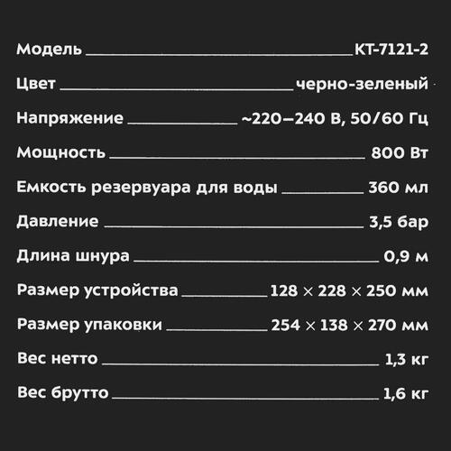 Кофемашина капсульная Kitfort КТ-7121-2 мощностью 800 Вт справляется с приготовлением кофе, какао, чая. О готовности приступить к работе уведомляет индикатор. Объем резервуара для воды составляет 0.36 л. Прибор использует не только капсулы, но также молотые зерна.