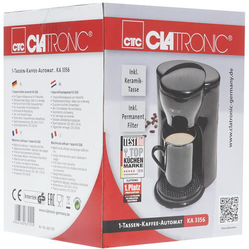 Clatronic KA 3356 обладает мощностью 330 Вт, которой вполне достаточно для домашней эксплуатации. Объем емкости для воды в конструкции кофеварки приравнивается к 120 мл. Нагревательный элемент в виде бойлера прослужит надежно и долго.