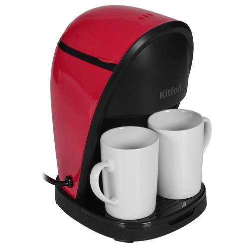 Кофеварка капельная Kitfort КТ-7188-1 в пластиковом корпусе красного цвета оборудована резервуаром для воды объемом 0.3 л. Выполненный из нейлона фильтр задерживает посторонние примеси и не допускает попадания в чашку с кофе. Включение устройства осуществляется с помощью кнопки на боковой стенке.