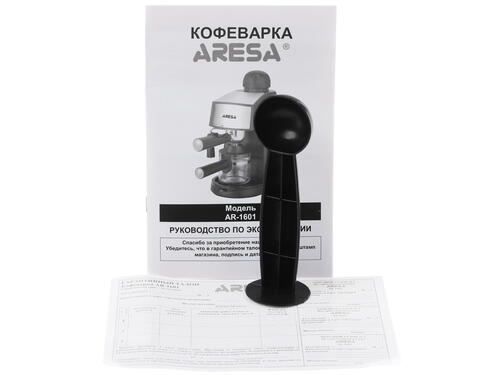 Aresa AR-1601 укомплектована фильтром и мерной ложкой. Небольшие размеры прибора (35x18.5x23 см) и вес (1.5 кг) делают его эксплуатацию еще проще.