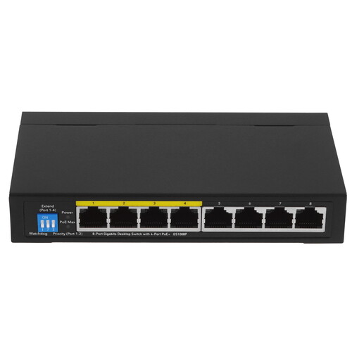 портов-8, неуправляемый, 1000 Мбит/сек, PoE, бюджет PoE 60 Вт