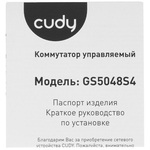 Управляемый коммутатор Cudy GS5048S4 3-го уровня оснащен 48 портами RJ-45 и 4 портами SFP. Скорость сетевых соединений по витой паре ограничена 1 Гбит/с, а по оптоволокну – 10 Гбит/с. Преимуществом коммутатора Cudy GS5048S4 является бесшумная работа благодаря безвентиляторному охлаждению.