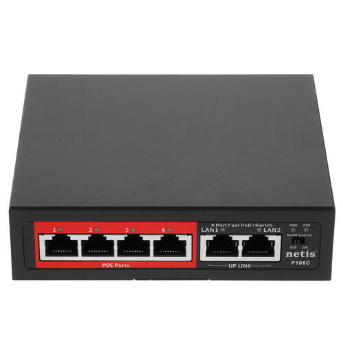 Коммутатор NETIS P106C представляет собой решение неуправляемого типа с методом коммутации Store and Forward, которое станет отличным выбором для дома и небольшого офиса. Благодаря своим особенностям модель отличается высокой производительностью и функциональностью и отлично подойдет для создания или расширения уже существующей сети, развертывания IP-телефонии, а также систем видеонаблюдения. Поддержка коммутатором различных сетевых протоколов обеспечит надежную защиту вашей сети. Подключение внешних устройств может осуществляться при помощи 6 портов с высокой пропускной способностью, из которых 4 обладают поддержкой питания PoE.