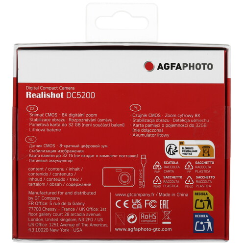 Компактный фотоаппарат AgfaPhoto DC5200 содержит все основные функции цифровой камеры: 2,4-дюймовый ЖК-экран, 8-кратный цифровой зум и литиевый аккумулятор. AgfaPhoto DC5200 включает в себя множество функций, которые позволяют адаптировать его к любой ситуации, например: автоспуск на 2, 5 или 10 секунд, необходимый для тех фотографий, которые вы хотите запечатлеть, или даже распознавание лиц, что гарантирует хорошее качество изображения, даже если вы не являетесь профессионалом в этой области.