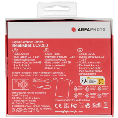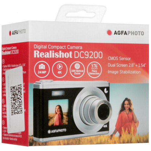 Компактный фотоаппарат AgfaPhoto DC9200 оснащен 24-мегапиксельной CMOS-матрицей для съемки четких снимков в разрешении до 9152x6844 пикселей и детализированных видеороликов в формате 4К с частотой кадров 30 кадр./сек. Встроенный микрофон обеспечивает видеосъемку записью звука в моно-формате. На фронтальной стороне устройства предусмотрен 1.54-дюймовый экран, благодаря которому объекты съемки смогут оценить композицию кадра. Модель подходит для использования в качестве веб-камеры.