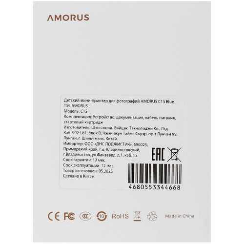 Детский мини-принтер для фотографий AMORUS C15 представляет собой компактное и портативное устройство. Принтер поддерживает беспроводное подключение через Bluetooth. В приложении доступна обширная библиотека шаблонов. Устройство использует технологию печати без чернил. Встроенный аккумулятор емкостью 1200 мАч обеспечивает длительное время автономной работы.