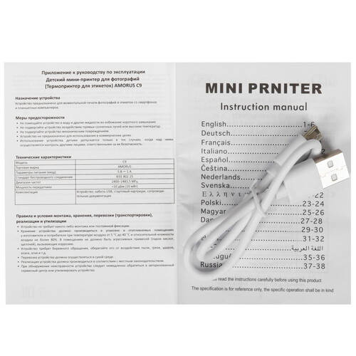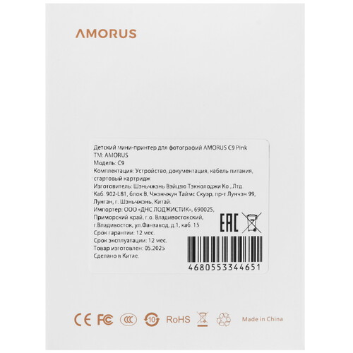 Детский мини-принтер для фотографий AMORUS C9 представляет собой компактное и портативное устройство. Принтер поддерживает беспроводное подключение через Bluetooth. В приложении доступна обширная библиотека шаблонов. Устройство использует технологию печати без чернил. Встроенный аккумулятор емкостью 1200 мАч обеспечивает длительное время автономной работы.