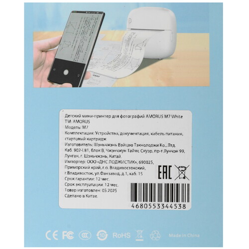 Компактный фотопринтер AMORUS M7 белый [5620313]