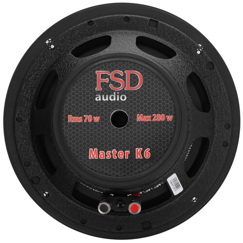 Компонентная АС FSD audio MASTER K6 с номинальной мощностью 70 Вт выдерживает без риска повреждения кратковременные импульсы до 280 Вт. 2-полосная АС состоит из двух круглых динамиков 6.5”. Чувствительности 89 дБ хватает для чистого и громкого звучания музыки разных жанров.