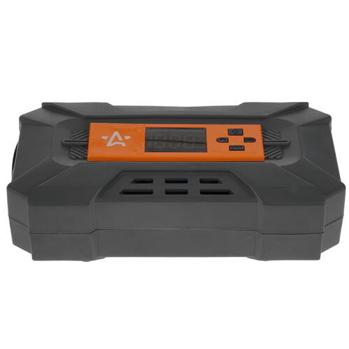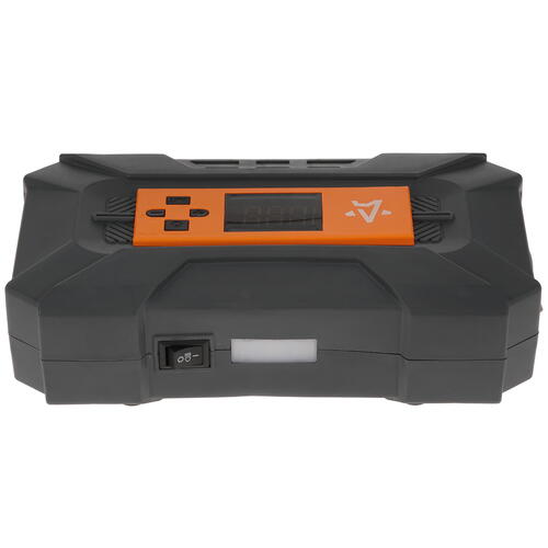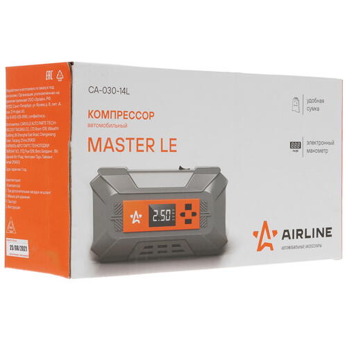 Прибор MASTER LE CA-030-14L подключается к прикуривателю авто, нагнетает давление до 7 атм, накачивая колеса со скоростью 22 л/мин. Предусматривается наличие прочного латунного штуцера и встроенного фонаря для выполнения ночных полевых работ. Имеется защита от короткого замыкания. Устройство поставляется в удобной для хранения сумке вместе с переходниками-насадками.