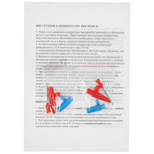 Автомобильный компрессор ZDK Wind35 будет надежным помощником в дороге. Насос работает от прикуривателя напряжение 12 Вольт. Производительность компрессора - 35 литров в минуту. В среднем накачка колеса займет около 1 минуты. Встроенный манометр позволит следить за уровнем давления. Мощность 120 Вт, максимальный ток 10А. Рекомендованная длительность беспрерывной работы - 10 минут. Длина шланга компрессора 3 метра для него в комплекте идут также 3 насадки/воздушные сопла. Насос ZDK подходит также для велосипедов, мотоциклов, лодок, бассейнов.