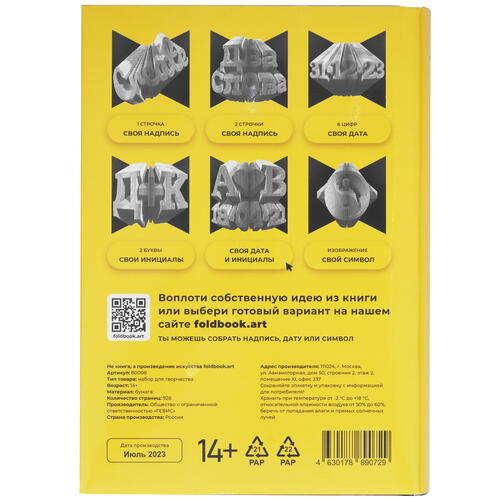 Подробная разметка на полях Mozabrick Foldbook облегчает сгибание страниц без использования линейки, ножниц и клея. После сборки конструктора вы можете разместить книгу на полке в качестве декоративной детали интерьера. На 928 листах хватает места для запечатления своих инициалов, памятной или даты рождения, знака сердца, инь-ян и других узнаваемых символов.