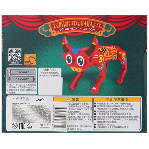 Конструктор ND Робобык представляет собой небольшую модель красного быка с движущимися элементами. Игрушка передвигается с помощью солнечной батареи, которая приводит в действие электромотор. При недостаточном освещении для работы можно использовать батарейки.