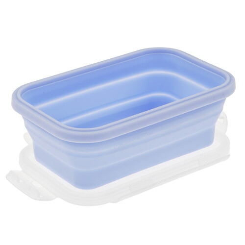 Контейнер пищевой EUROHOUSE 15976 выполнен из простого в уходе и безопасного для продуктов силикона. Посуду можно складывать для удобства хранения в кухонном шкафу. Прямоугольная емкость с размерами 12x18 см вмещает 0.8 л. Контейнер можно использовать для разогрева блюд в микроволновой печи.