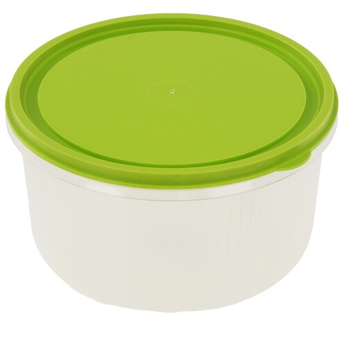 EUROHOUSE 16423 – круглая емкость объемом 2 л. Прозрачный контейнер оснащен плотной крышкой-накладкой. В такой емкости удобно хранить еду в холодильнике или брать с собой готовые блюда на работу или пикник. Контейнер можно мыть только вручную, без использования посудомоечной машины.