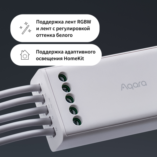 Драйвер Aqara ZNDDMK11LM рассчитан на подключение LED-лент CCT WW+CW с использованием 2 каналов или RGBW ленты через 1 канал. Радиус действия устройства равен 10 м. Драйвер интегрирует обычную светодиодную ленту в экосистему Aqara и применяется для настройки основных параметров освещения – яркости, цветовой температуры и цвета. Модель используется совместно с центром умного дома поддержкой Zigbee 3.0. Поддерживается управление через мобильное приложение Aqara Home.