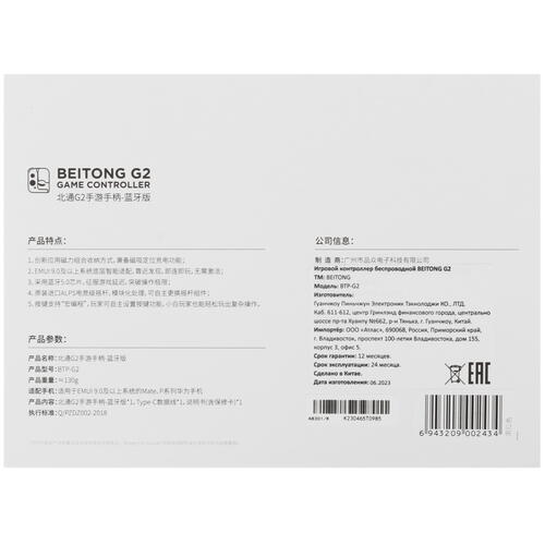 Снабженный регулируемыми держателями беспроводной геймпад BEITONG G2 легко зафиксировать на мобильном устройстве с толщиной корпуса 6-10.5 мм и шириной корпуса 67-92 мм. Аксессуар получает питание от встроенного аккумулятора, для зарядки которого на его корпусе предусмотрен входной разъем USB Type-C.