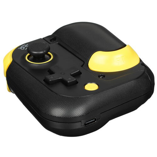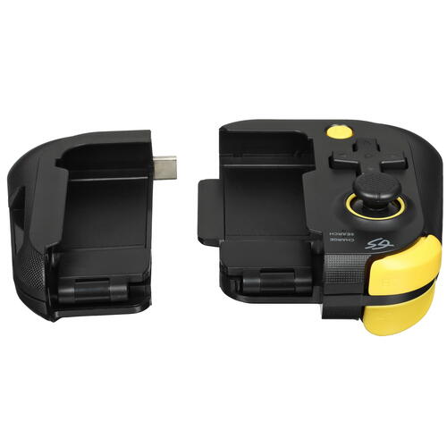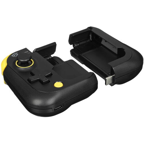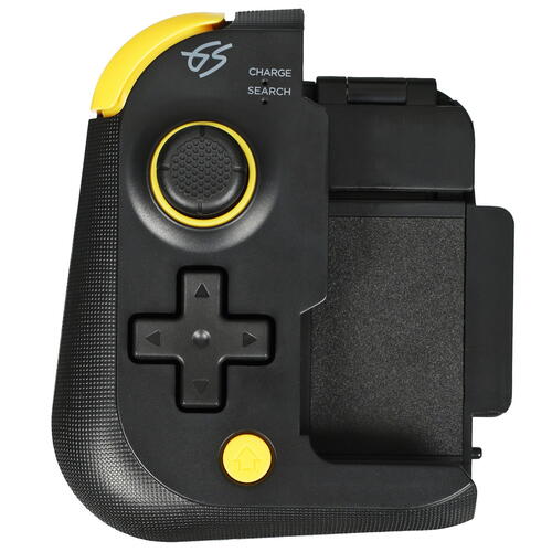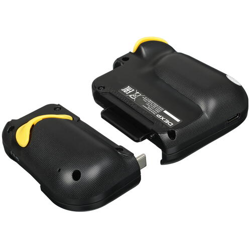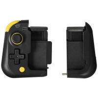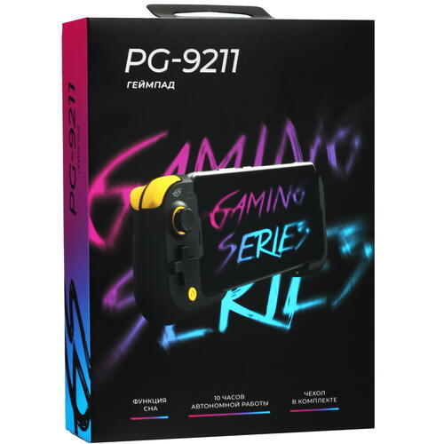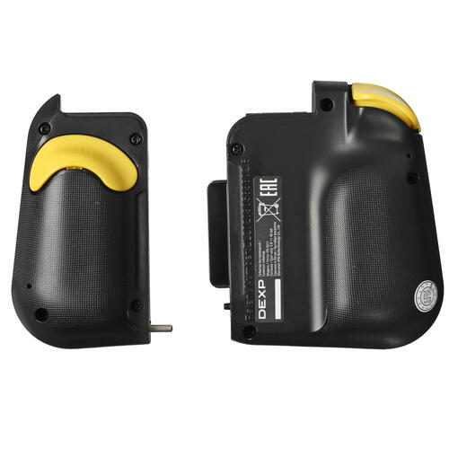 Геймпад беспроводной DEXP PG-9211 подходит для совместного использования со смартфонами, которые работают под управлением ОС Android и iOS разных версий. Синхронизация выполняется на основе интерфейса Bluetooth. Контроллер выполнен в черном корпусе с желтыми декоративными вставками. Он состоит из двух частей и имеет держатель для фиксации мобильного устройства.