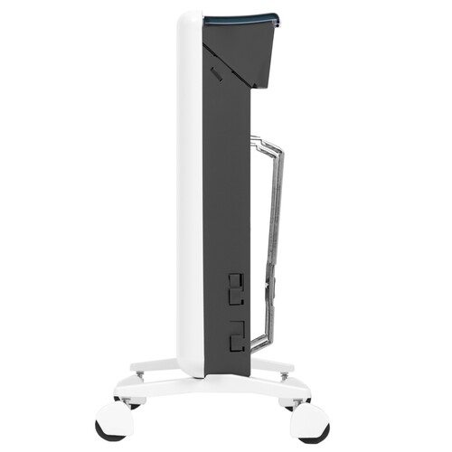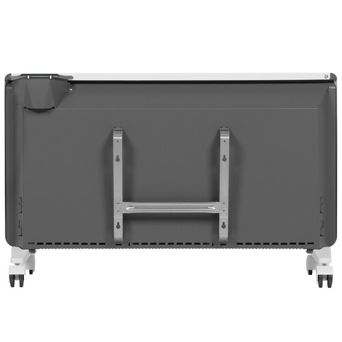 Обогреватель можно установить на опоры с колесиками для удобного перемещения или закрепить на стене с помощью кронштейнов. Блок управления, расположенный в верхней части корпуса, обеспечивает мгновенный доступ к настройкам.