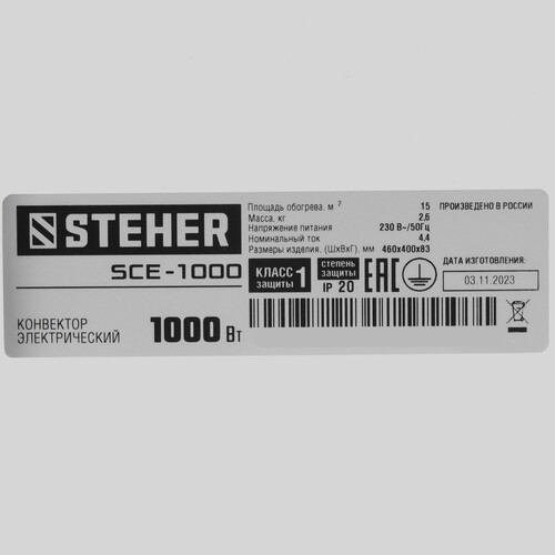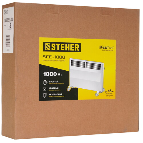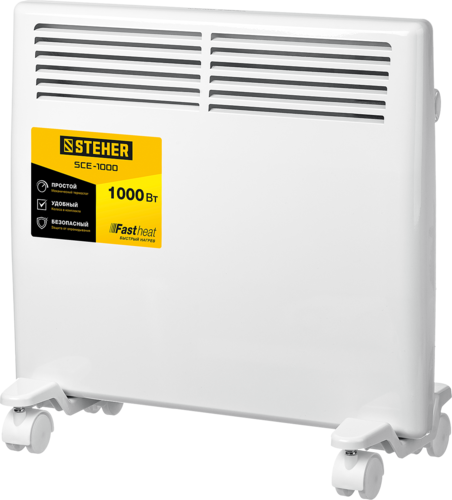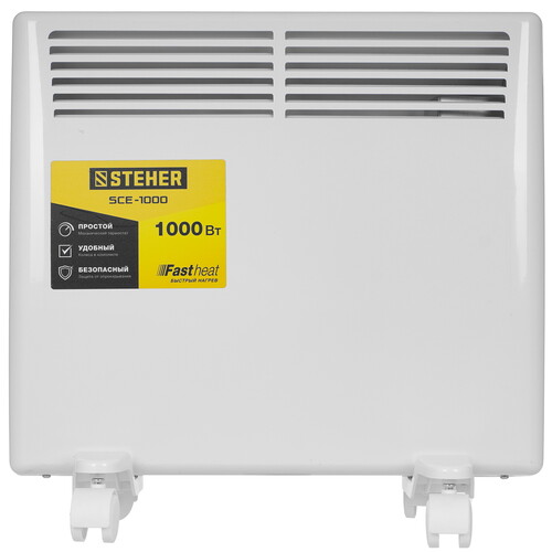 Электрический конвектор STEHER мощностью 1000 Вт станет отличным выбором для обогрева как жилых, так и офисных помещений площадью до 15 м². Благодаря кронштейну для настенного крепления, который поставляется в комплекте, его можно установить в любом удобном месте. Защита от опрокидывания обеспечивает безопасность во время эксплуатации. Нагревательный элемент СТИЧ - моментальный нагрев и остывание.