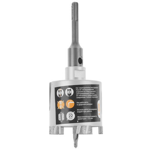 Алмазная коронка RAGE by VIRA 559527 предназначена для использования с перфоратором в безударном режиме и подходит для работы с армированным бетоном, бетоном, кирпичом, силикатным кирпичом и камнем. Центрирующее сверло обеспечивает точное позиционирование и предотвращает отклонения, а увеличенное количество сегментов (5 шт.) повышает скорость сверления и устойчивость к механическому разрушению за счет снижения вероятности удара о армирующие элементы. Компенсационные отверстия в коронке снижают вибрацию, уровень шума и способствуют быстрому охлаждению инструмента.