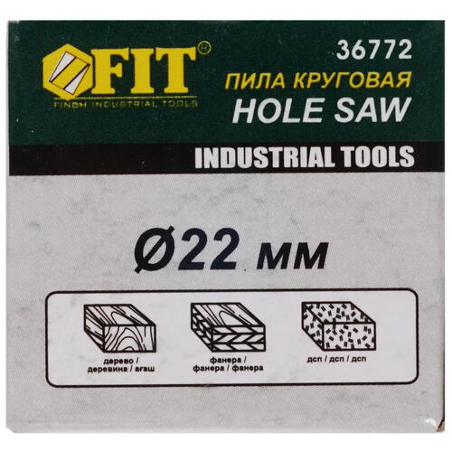 Коронка FIT 36772 – продукция известного производителя инструментов разных типов. Изделие предназначено для сверления изделий из древесины (в том числе – фанеры и ДСП). Диаметр коронки составляет 22 мм.