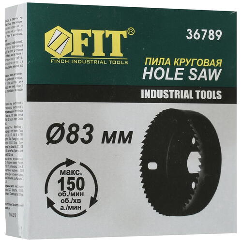 Коронка FIT 36789 представляет собой важный элемент оснастки, предназначенный для использования в электроинструментах. Изделие широко применяется для высверливания отверстий в ДСП и древесине мягких и твердых пород, а также в фанере, обеспечивая получение отличного результата с первого раза. Диаметр коронки достигает 83 мм. Особенность коронки FIT 36789 в повышенном сроке службы благодаря тому, что она изготовлена из инструментальной стали, обработанной термически. Поставляется оснастка в картонной коробке, в которой изделие удобно хранить.