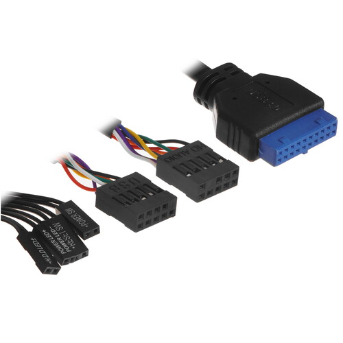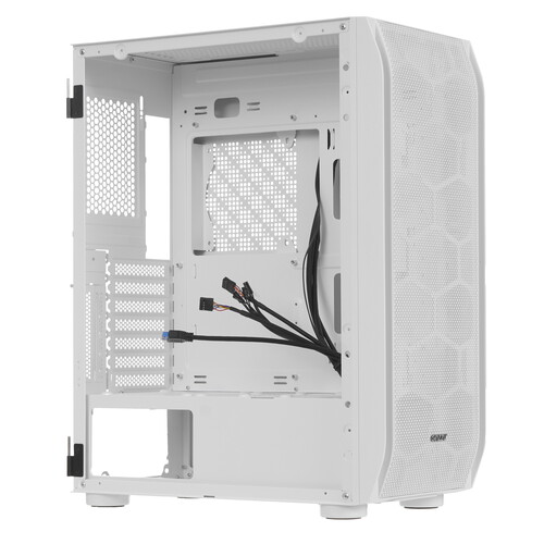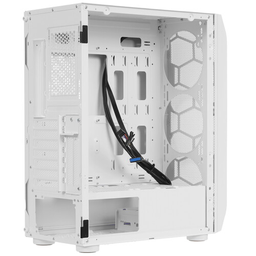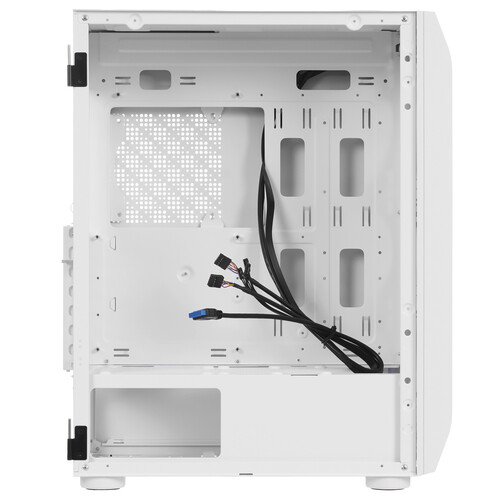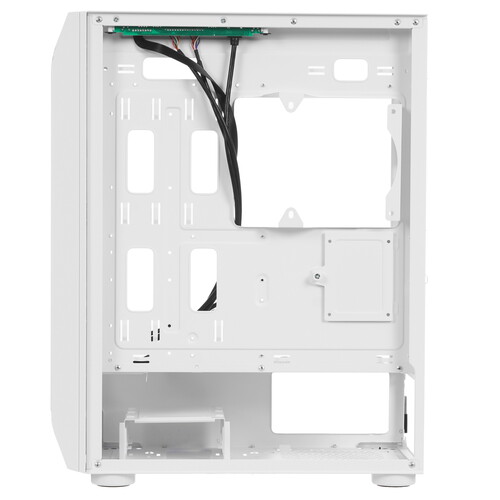 Боковая панель из тонированного закаленного стекла на петлях оснащена магнитными замками. Разъемы 2*USB2.0, 1*USB3.0, HD Audio, места для установки SSD.