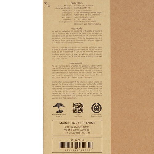 Модульный корпус Streacom DA6 XL для материнских плат Mini-ITX и Deep Mini-ITX, прочная рама из нержавеющей стали и алюминия с регулируемыми распорками. Вертикальная установка видеокарты длиной до 358 мм, до 8 вентиляторов 140 мм, радиаторов до 280 мм, поддержка блоков питания ATX или SFX/-L до 185 мм, до 9 слотов для дисков 2,5 / 3,5".