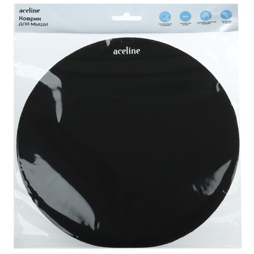 Коврик Aceline Black Round черного цвета имеет маленький размер 250/200/2 мм и удобен для управления курсором и отдачи различных команд компьютеру, ноутбуку, телевизору.