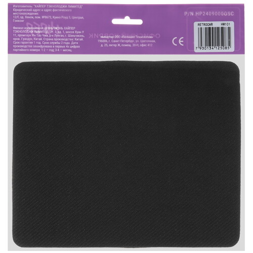 Коврик HIPER HM101 сделан из прочного материала, который устойчив к износу и при этом не позволяет изделию соскальзывать со стола. Покрытие основания обеспечивает беспрепятственное скольжение мыши по поверхности и не сковывает движения пользователя. Благодаря прошитым краям коврик защищен от распускания.