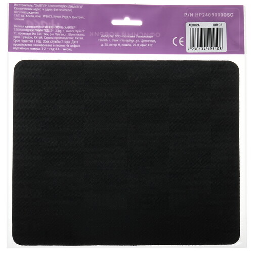 Коврик HIPER HM103 сделан из прочного материала, который устойчив к износу и при этом не позволяет изделию соскальзывать со стола. Покрытие основания обеспечивает беспрепятственное скольжение мыши по поверхности и не сковывает движения пользователя. Благодаря прошитым краям коврик защищен от распускания.