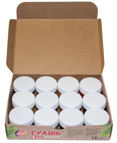 Гуашь ’Луч. Zoo’ 12 цветов по 15 мл, предназначена для творчества детей, при необходимости разбавляется водой, безвредна, быстро высыхает, легко смывается с рук и одежды. Краски изготовлены на основе натуральных компонентов и высококачественных пигментов. Обладают хорошей кроющей способностью и чистотой цвета. Гуашь находится в пластиковых герметичных баночках с завинчивающейся крышкой. В набор входит 12 цветов: белила титановые, желтый светлый, алый, зеленый светлый, синий светлый, черный, желтый темный, коричневый, голубой темный, изумрудный, рубиновый, охра.
