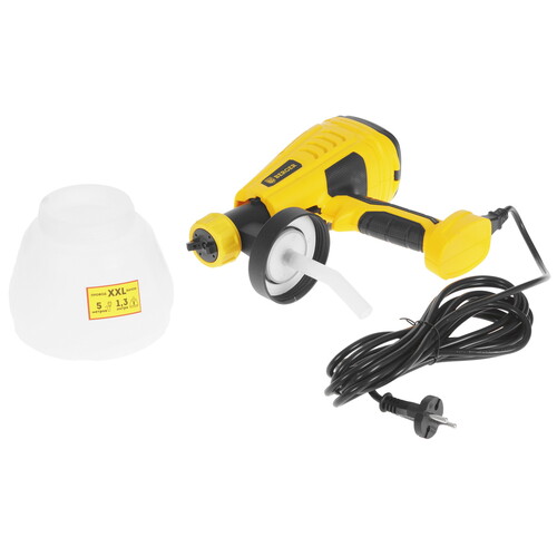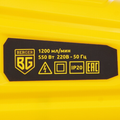 Краскопульт BERGER BG1413 оснащен вискозиметром. Инструмент предназначен для работы с материалами вязкостью до 100 DIN. Мощность краскопульта – 550 Вт. Инструмент получает питание от сети.