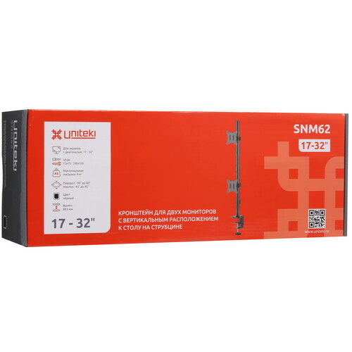 Кронштейн UNITEKI SNM62 не оставит никого равнодушным, не только потому, что он подходит для всех мониторов, диагональю от 17 до 32 дюймов и весом до 9 кг., но и потому, что позволяет легко и просто передвигать мониторы в любых плоскостях. Поворачивайте мониторы на 180 градусов, наклоняйте вверх и вниз, всё это может наш кронштейн UNITEKI SNM62. Наклонно-поворотный кронштейн-крепление со струбциной UNITEKI SNM62 отвечает высочайшим стандартам качества.