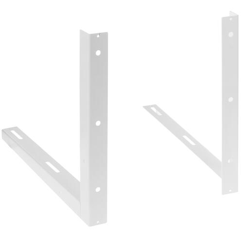 Изделия Рэмо 495х600 окрашены в белый цвет, а благодаря специальному составу краски не боятся осадков и пыли. Кронштейн выдерживает нагрузку в 70 кг. Наружный блок фиксируется на крепежах, что исключает случайное падение и поломку оборудования.