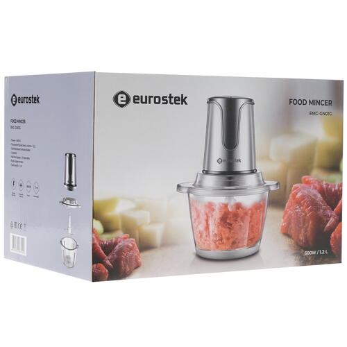Устройство Eurostek EMC-GN01G действует с мощностью 600 Вт при наличии двух скоростей. Конструкция дополнена устойчивыми прорезиненными ножками, не позволяющими прибору скользить по столу во время работы. Данная модель весит 1.94 кг и обладает размерами 20x29.5x19.5 см.
