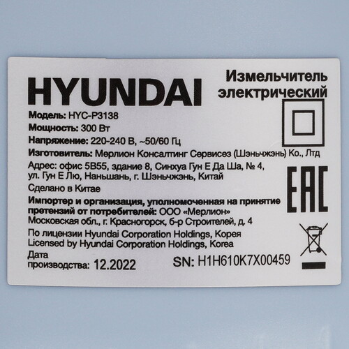 Измельчитель Hyundai HYC-P3138 голубой [9187820]