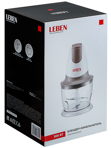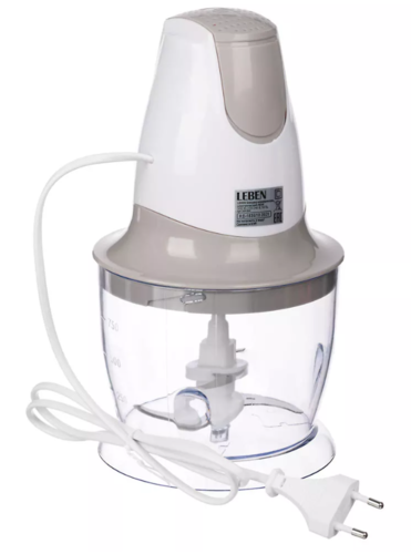 Электрический блендер-измельчитель LEBEN - многофункциональный прибор, сочетающий в себе функции нарезки, взбивания и измельчения. Приготовление вкусных супов, свежих салатов, гарниров и соблазнительных десертов станет быстрым и легким занятием.