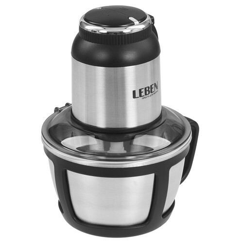 Измельчитель LEBEN 269-051 серебристого цвета мощностью 300 Вт предназначен для мелкой нарезки мяса, овощей, фруктов и орехов. Модель оснащена чашей на 2000 мл. Такого объема хватит для приготовления 3-5 порций еды. Емкость плотно закрывается для предотвращения разбрызгивания ингредиентов во время использования. Благодаря двум скоростям вы сможете выбирать степень измельчения в зависимости от вида и плотности продуктов.