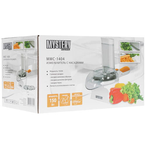 Блендер Mystery MMC-1404 укомплектован фигурной насадкой шинковкой, благодаря которой вы сможете сделать украшения для торта или просто необычно нашинковать овощи. За пластиковым корпусом легко ухаживать: для удаления с него загрязнений достаточно вооружиться влажной тряпочкой и потратить на эту процедуру минимум времени и усилий. Острые металлические лезвия играючи справляются с измельчением, шинковкой и нарезкой даже твердых продуктов. Габариты представленной модели свидетельствуют о ее компактности - 17.5x28.5x16 см.