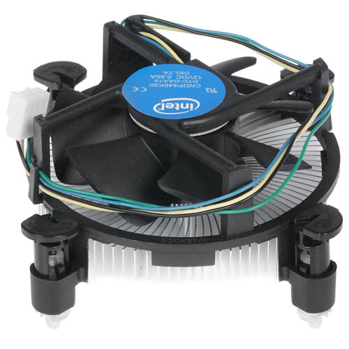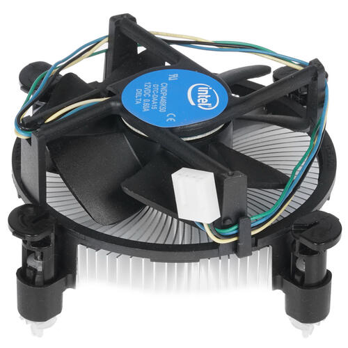 Основание процессорного кулера Intel Original уже покрыто слоем термопасты, необходимой для его монтажа, что упрощает установку данной системы охлаждения. Скорость вращения вентилятора системы, подключаемого к разъему 4-pin, задается автоматикой (PWM), а шумность во время работы находится в пределах 23 дБ. Вес компактного и практичного кулера в сборе составляет всего 243 гр.