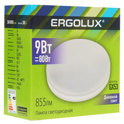 Лампа светодиодная Ergolux LED-GX53-9W-GX53-6K [5467591]
