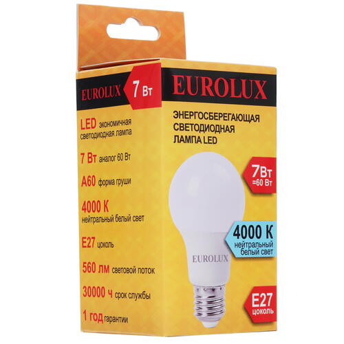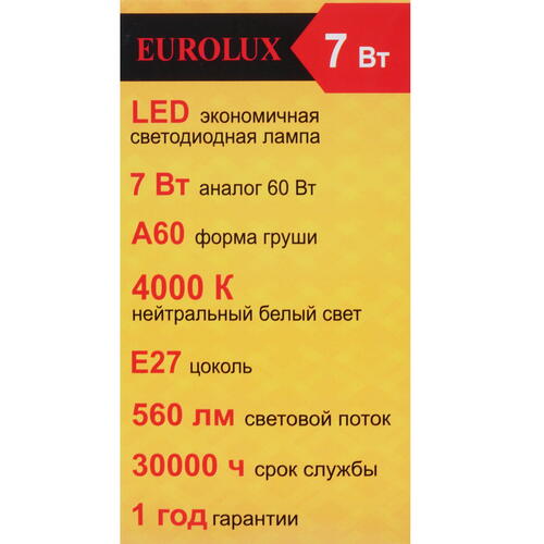 Лампа светодиодная Eurolux LL-E-A60-7W-230-4K-E27 [5401690]