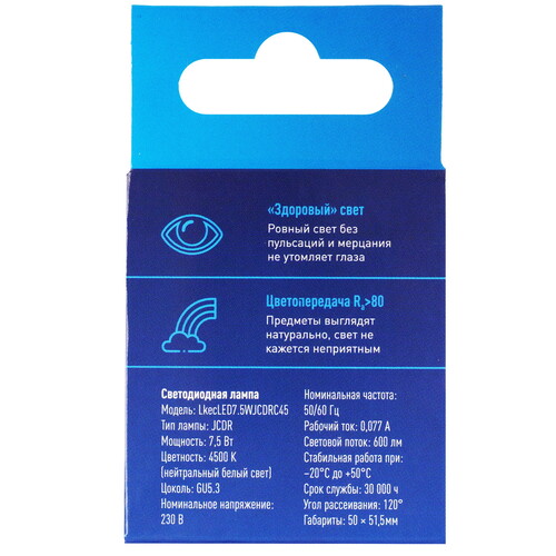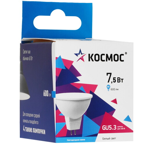 G5.3, 7.5 Вт, 600 лм, 4500 K, 220-240 В / 50 Гц, в комплекте: 1 шт