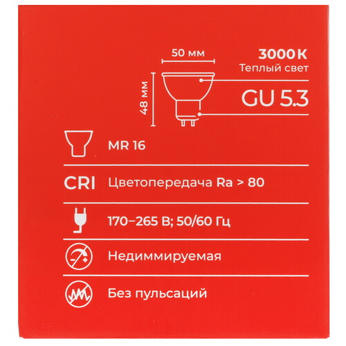 GU5.3, 5 Вт, 380 лм, 3000 K, 170-265, в комплекте: 1 шт