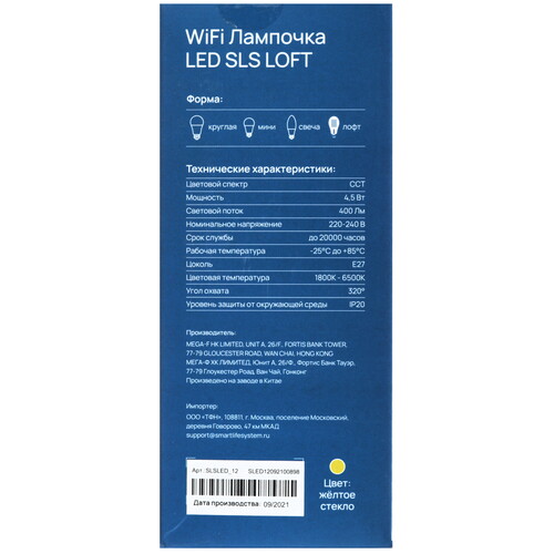 Возможно голосовое управление с помощью ассистентов Алиса и Маруся. Благодаря прозрачной колбе в форме свечи обеспечиваются равномерное распределение светового потока в пространстве помещения и высокая цветопередача без мерцания. Лампа SLS LED-12 мощностью 4.5 Вт гарантирует экономичное потребление электрической энергии. Ресурс службы составляет 20000 часов.