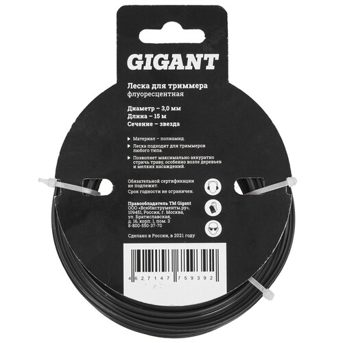 Леска для триммеров Gigant G12-0411P диаметром 3 мм подходит для большинства электрических и бензиновых триммеров. Длина 15 м позволяет несколько раз заменить изношенный участок. Полиамидный материал устойчив к истиранию, гибок при намотке на катушку и не теряет прочности при контакте с влагой. Сечение в виде звезды служит для борьбы с жесткой растительностью. Gigant G12-0411P подойдет для владельцев дачных участков и коммунальных работников.