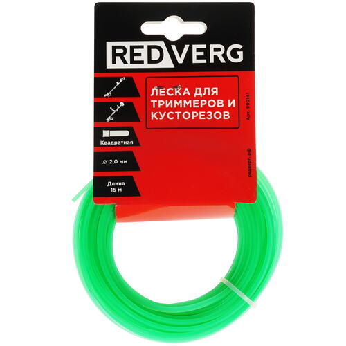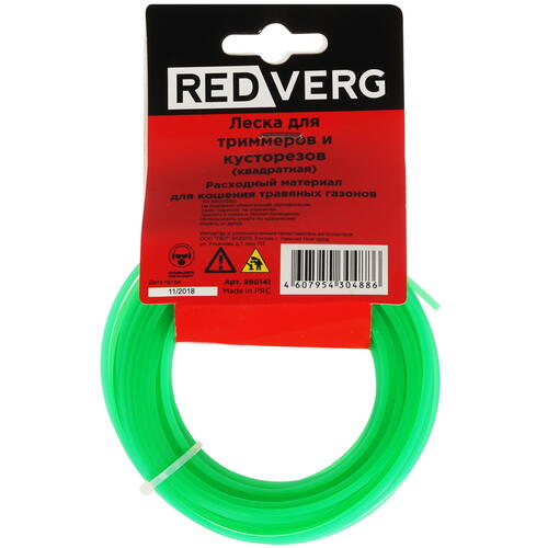 Леска RedVerg 990141 с яркой зеленой расцветкой обладает квадратной формой сечения. Такая конструкция способствует быстрому и ровному разрезанию стеблей травы, мелких побегов и тоненьких веточек. Нить легко вставляется в триммер и отличается длительным сроком службы благодаря износостойкости и повышенному уровню жесткости.