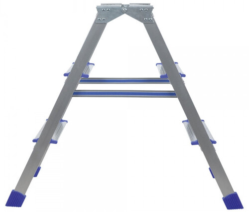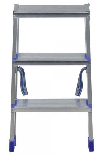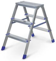 Стремянка двусторонняя Ника ДЛС3 с тремя ступенями оптимизирована для использования в быту. Высота последней ступени составляет 68 см. Специальная рифленая поверхность площадки предотвращает скольжение обуви. Благодаря прочному креплению ступеней обеспечивается высокая жесткость конструкции. Изделие выполнено из алюминия, характеризующегося прочностью и легкостью. Для защиты напольных покрытий стремянка оборудована противоскользящими наконечниками опор. Обладая небольшими габаритами, стремянка Ника ДЛС3 гарантирует удобство в пользовании и хранении.